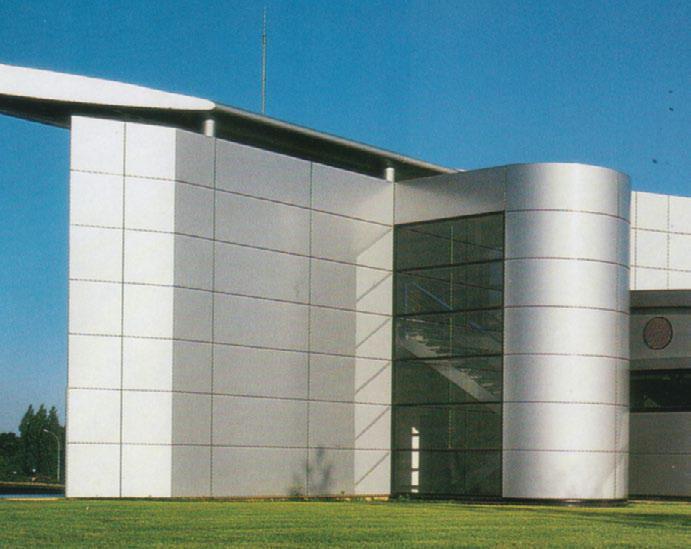 The use of metal panels in contemporary architecture is quite common. They can provide a cost effective enclosure and can have characteristics not easily found in other building materials such as a sheen from a metallic coating or pronounced shadow lines. Metal panels commonly found in pre-engineered buildings such as long span, fluted or ribbed panels running vertically are strongly discouraged. In fact, the use of any ribbed metal panel