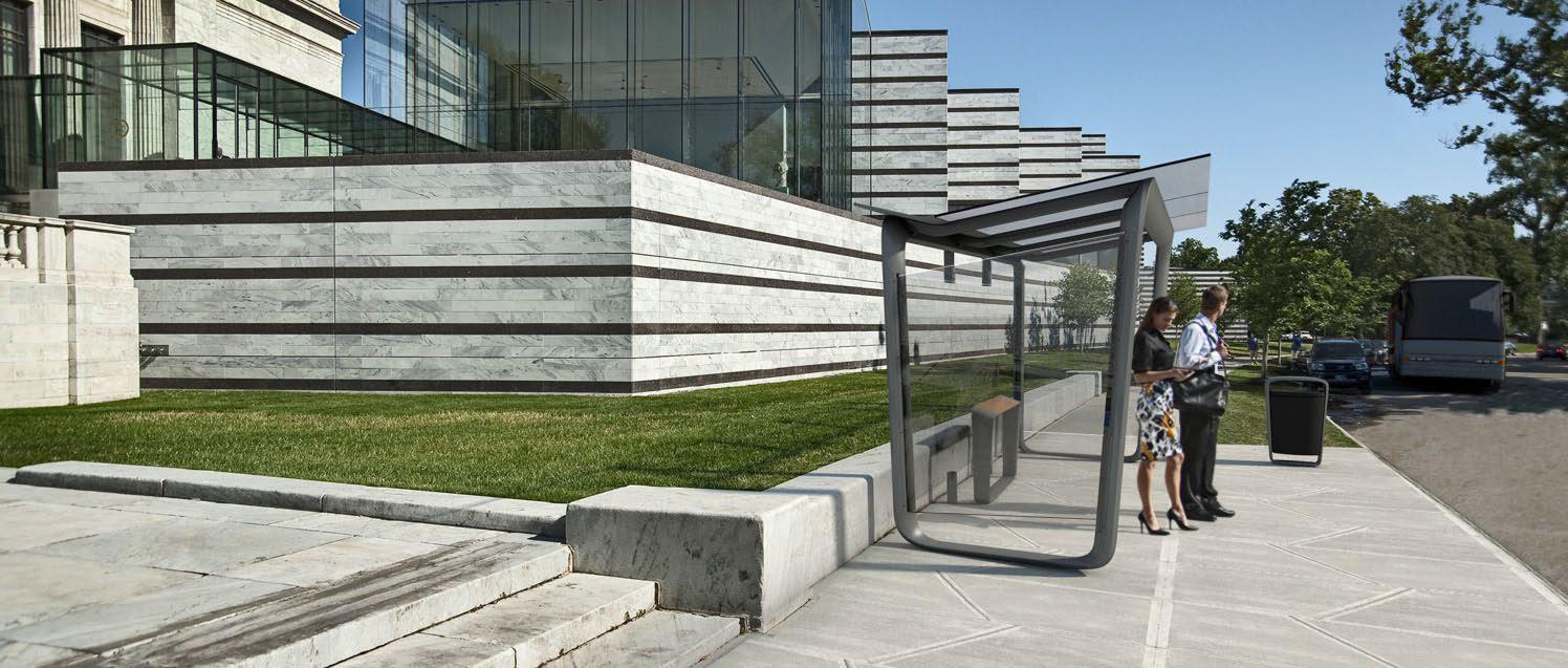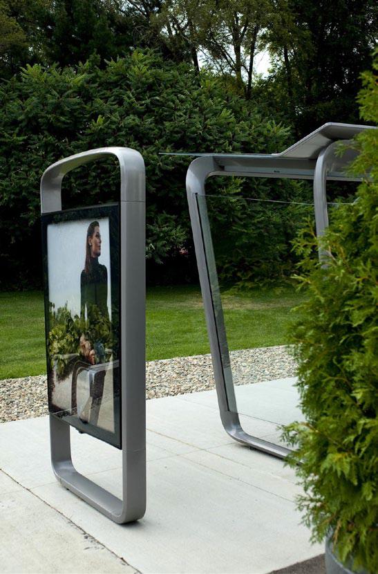 roadway improvements,. Private businesses should also be encouraged to utilize streetscape elements to further extend the overall design character into private space. Consistent with the ideals of technology, advancement and contemporary design, the Metro 40 Collection from Landscape Forms provides a prototype that meets the