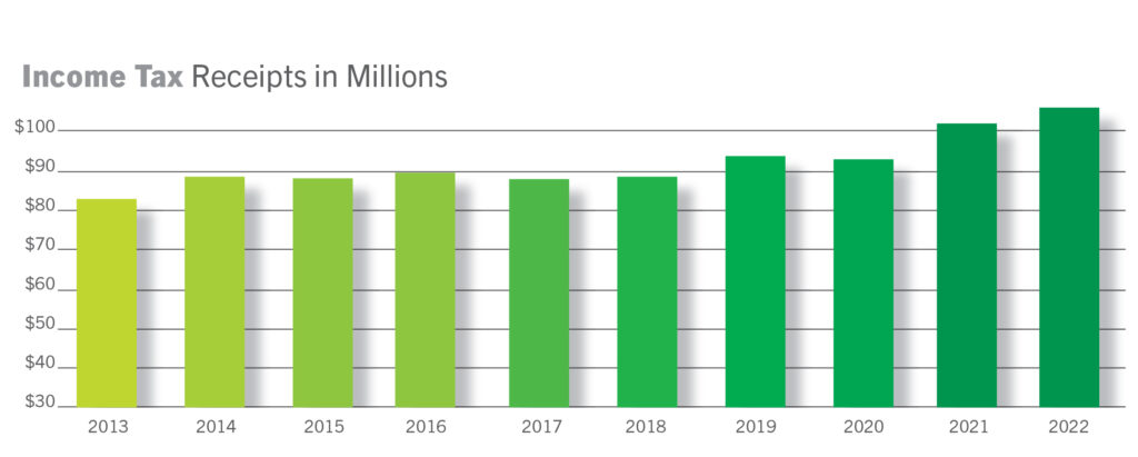 Since 2014, our income tax revenues have demonstrated a positive trajectory, with significant acceleration in the post-pandemic period. This financial strength enables us to reinvest in the community, ensuring sustained prosperity and quality of life.