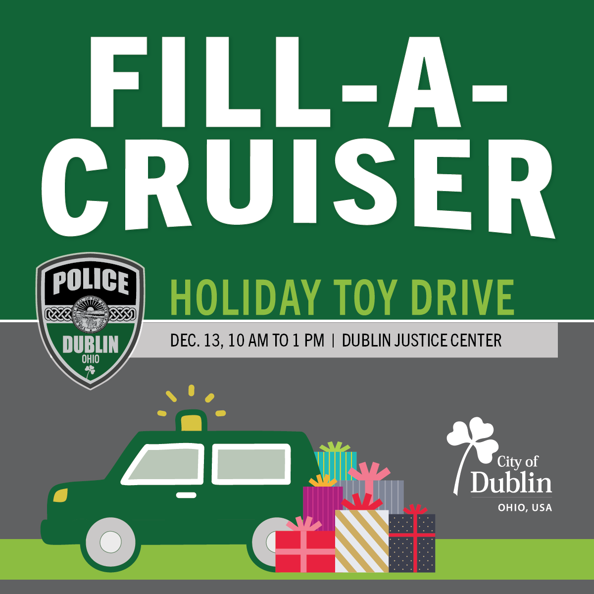 The Dublin Police Department is turning on the lights for a brighter cause—bringing joy to children and families through its annual Fill-A-Cruiser Toy Drive! Partnering for the seventh straight year with Get Behind The Badge, they aim to deliver holiday smiles to families across our community. Each year, this drive provides toys for more than 100 children of fallen or critically injured first responders and other local families in need.