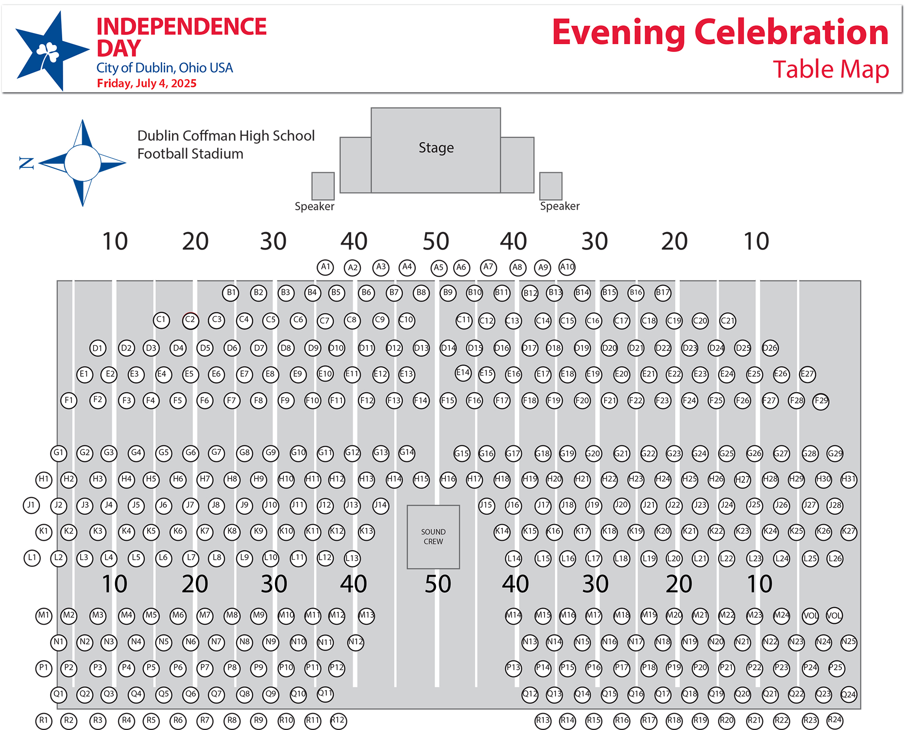 A limited number of $1,000 Patriotic Table partnerships are available for the 2025 Independence Day Evening Celebration. This sponsorship includes: a prime-location table and a parking pass. Individuals and companies will be recognized for their partnership on the City of Dublin website and on signage at the evening celebration. To become a Patriotic Table Partner, contact Jim Loch at rloch@dublin.oh.us before May 9.