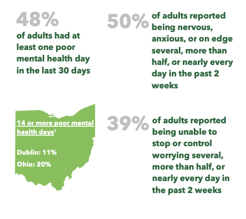 Youth Behavioral Health — create a collective-impact initiative focused on providing information to parents of Dublin youth. According to the qualitative research, adult and youth residents are concerned about youth mental health and substance misuse among youth.