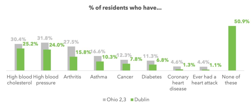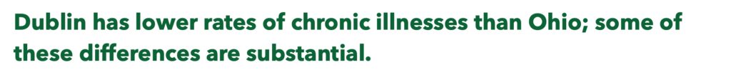 Healthcare Navigation — develop a centralized source of health care access information for Dublin residents. It was found that 16% of residents had difficulty getting physical or dental healthcare in the past year, and 15% of residents had difficulty getting mental healthcare in the past year.