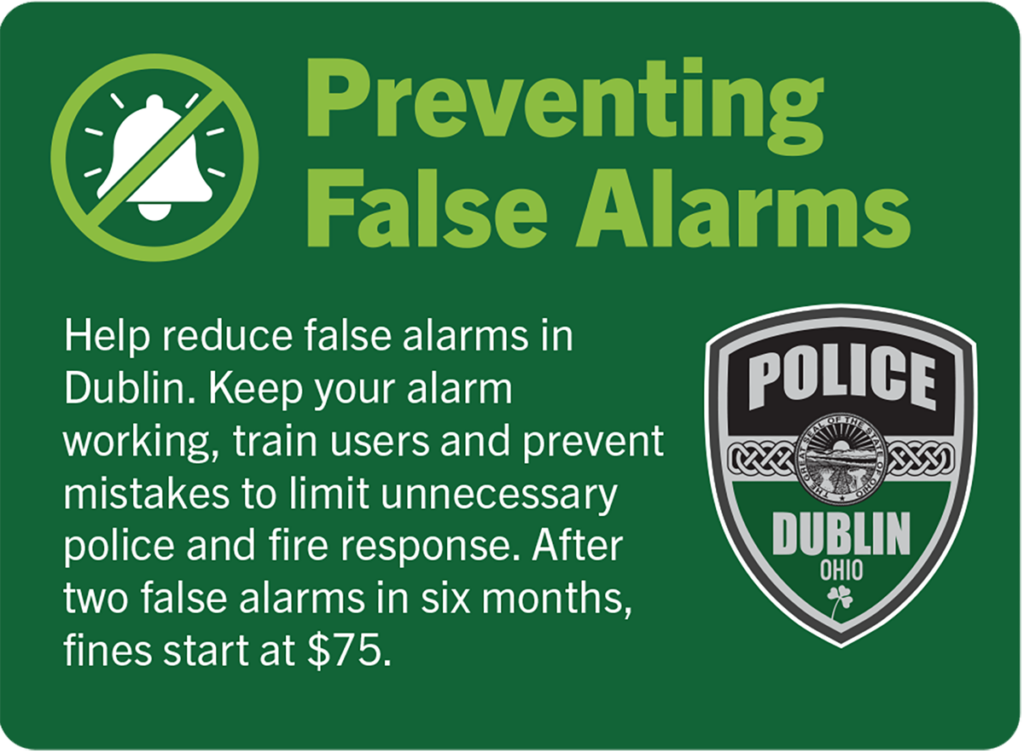 These alarms result from human mistakes or equipment issues that could have been prevented. Violations of the City of Dublin’s false alarm ordinance (Section 90.01) can result in fees and are considered a second-degree misdemeanor.